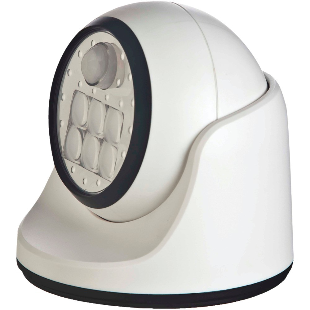 42 lumens; Attaches to indoor/outdoor walls; Weatherproof & easy to install; Motion sensor provides security & convenience;100,000-hour lifetime; 10x as efficient as a conventional light bulb; Conserves energy during daylight; Includes adjustable head & mounting plate ; Requires 4 C batteries;White